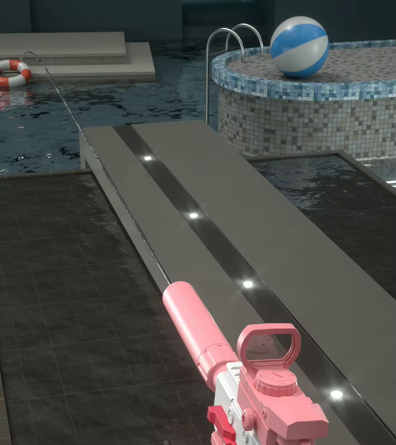 This water pistol is equipped with an aiming device that ensures maximum accuracy when shooting. Thanks to this, you will be sure to hit your target with high accuracy, whether it is fun on summer days or competitive games with friends.