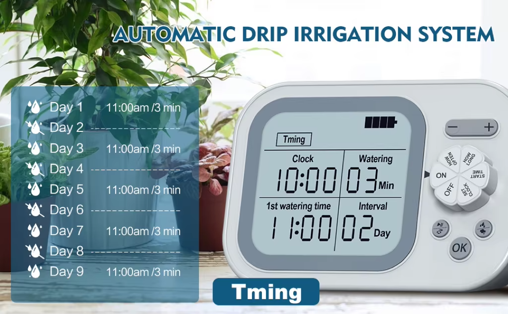 Automatic and carefree care: Thanks to the adjustable timer, you can set the watering exactly according to the needs of your plants. Just program it once and the system will take care of everything for you - even when you are away.