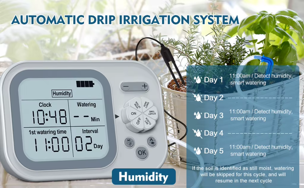 Watering modes: Manual / Programmable timer / Intelligent humidity mode