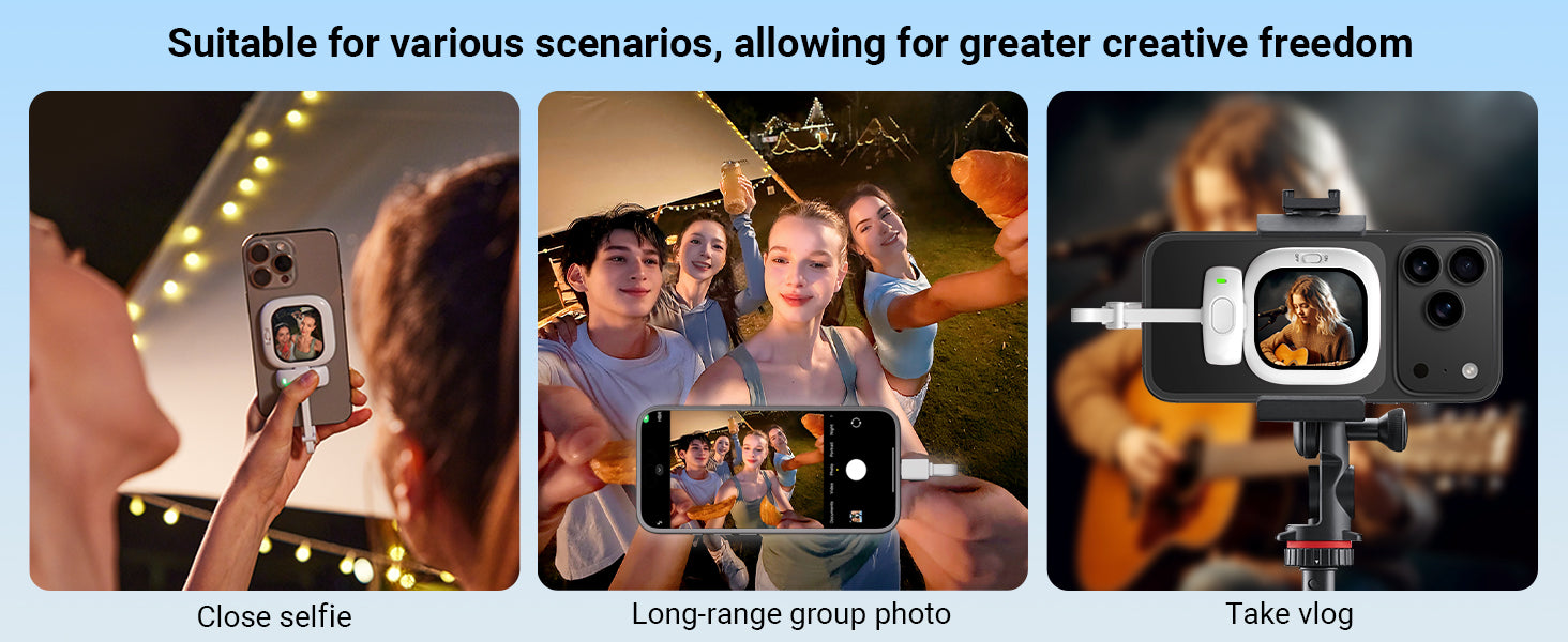Get the ultimate image quality when filming and taking photos with the Founist screen . This compact display lets you use your iPhone's rear camera for vlogging, selfies, live streams, or TikTok—with instant, real-time preview without lag.