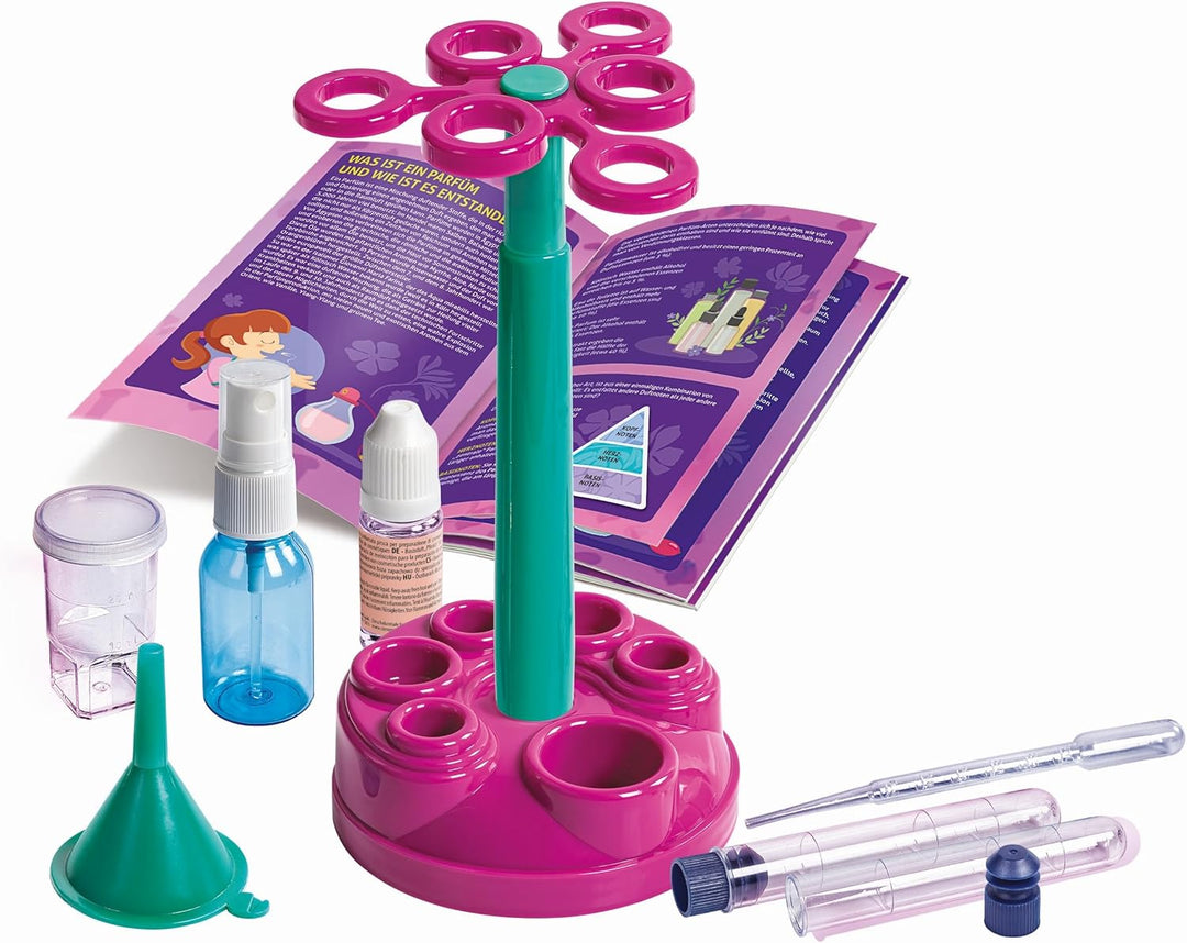 Kis tudományos laboratórium illatok és illatkompozíciók kísérletezésére és létrehozására. A készlet tartalmaz illatok és minden szükséges kiegészítő, mint például permetező, mérőedény, tölcsér, pipetta és keverő. A gyerekek egyedi parfümöket, lakásillatosítókat és aromaolajokat készíthetnek, miközben fejlesztik kreativitásukat és felfedezőkedvüket.