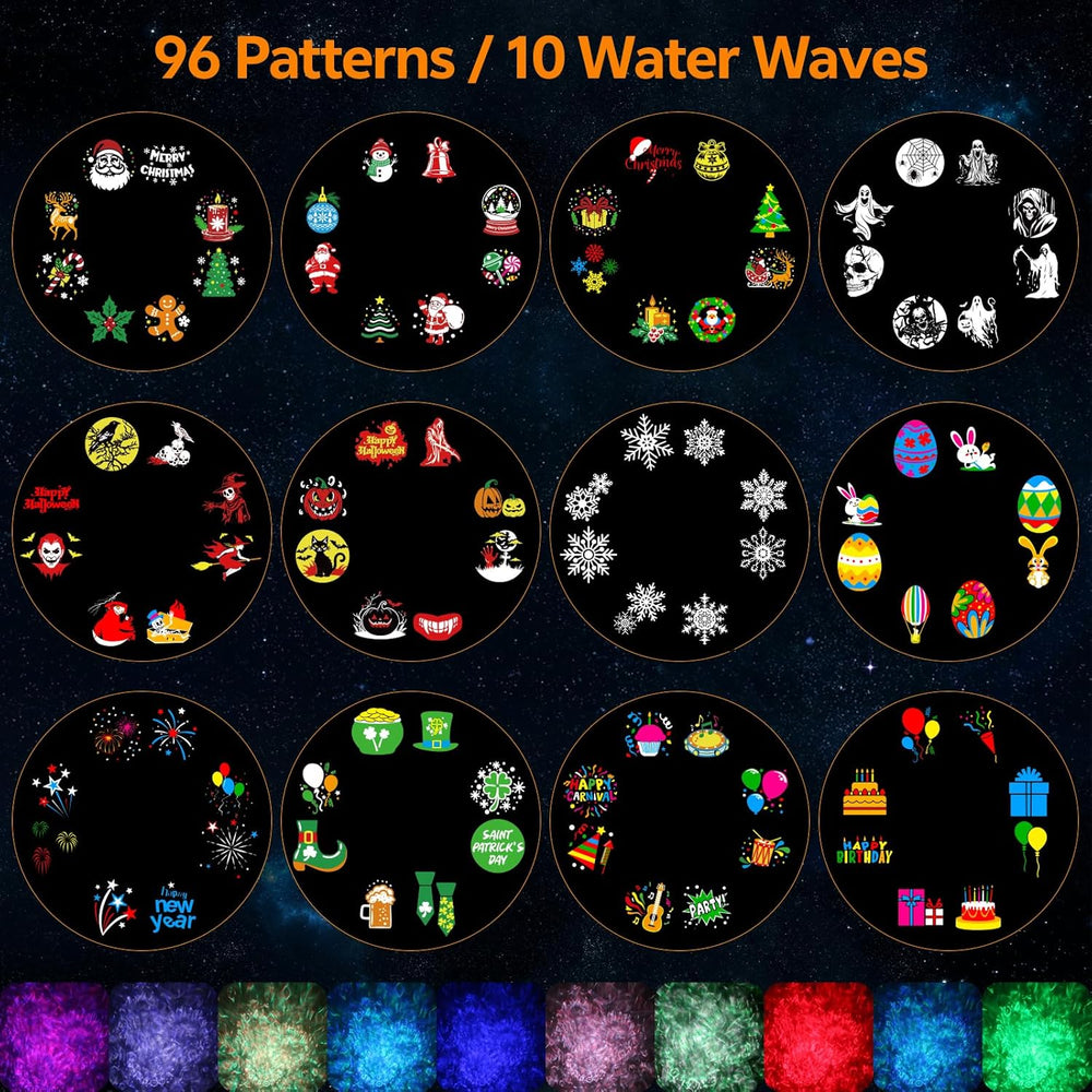 MOSSNDAR Venkovní projektor s motivy – 12 filmů, 10 efektů mořských vln, dálkové ovládání