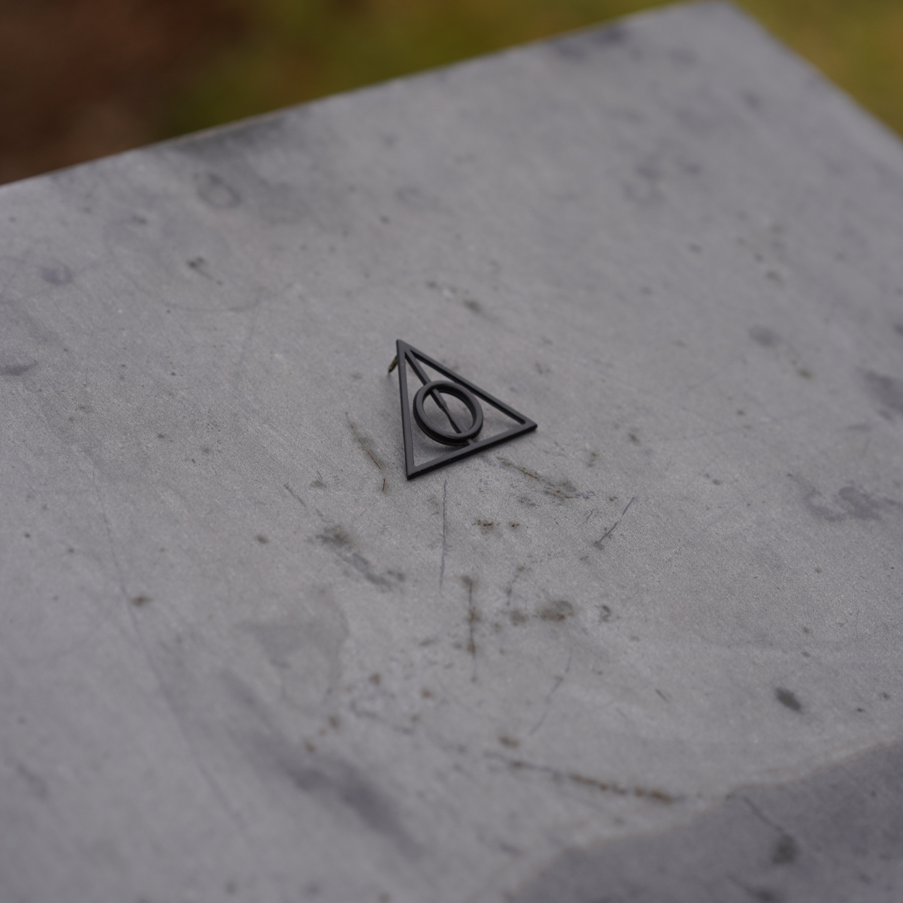 Elder pálca, feltámadás kő és láthatatlanná tevő köpeny. Olyan tárgyak hármasa, amelyeket a Harry Potter könyvek és filmek minden rajongója ismer. Tedd különlegessé ruhádat a Halál Ereklyéi formájú, fekete cinkből készült elegáns brosssal, amely a Roxfort történetek minden rajongójának örömet okoz. Az egyszerű tűs rögzítésnek köszönhetően bárhol viselheti. Mutasd meg, ki vagy.