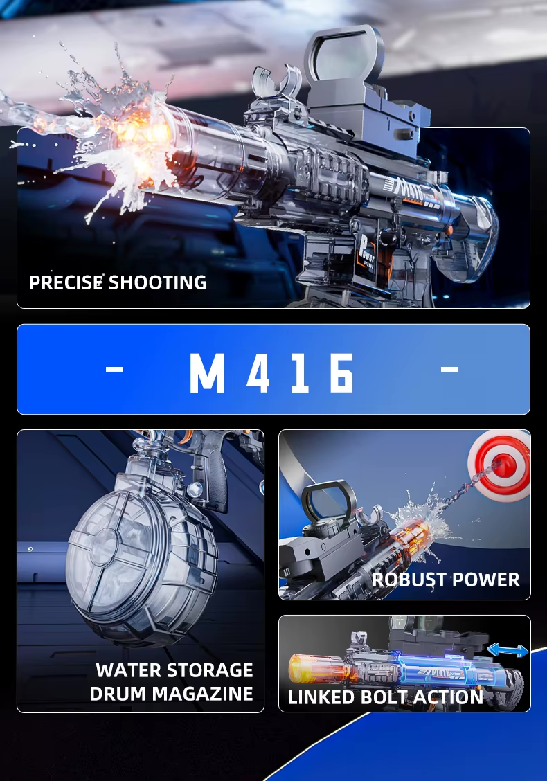 Připravte se na vodní bitvu nové generace! Elektrická vodní pistole Battle 737 kombinuje automatickou kontinuální střelbu, realistický pohyb závěru se zpětnou vazbou a výrazné LED světelné efekty. Díky výkonnému elektrickému mechanismu a dostřelu až 10 metrů nabízí intenzivní akci, která posune každou letní přestřelku na vyšší úroveň.