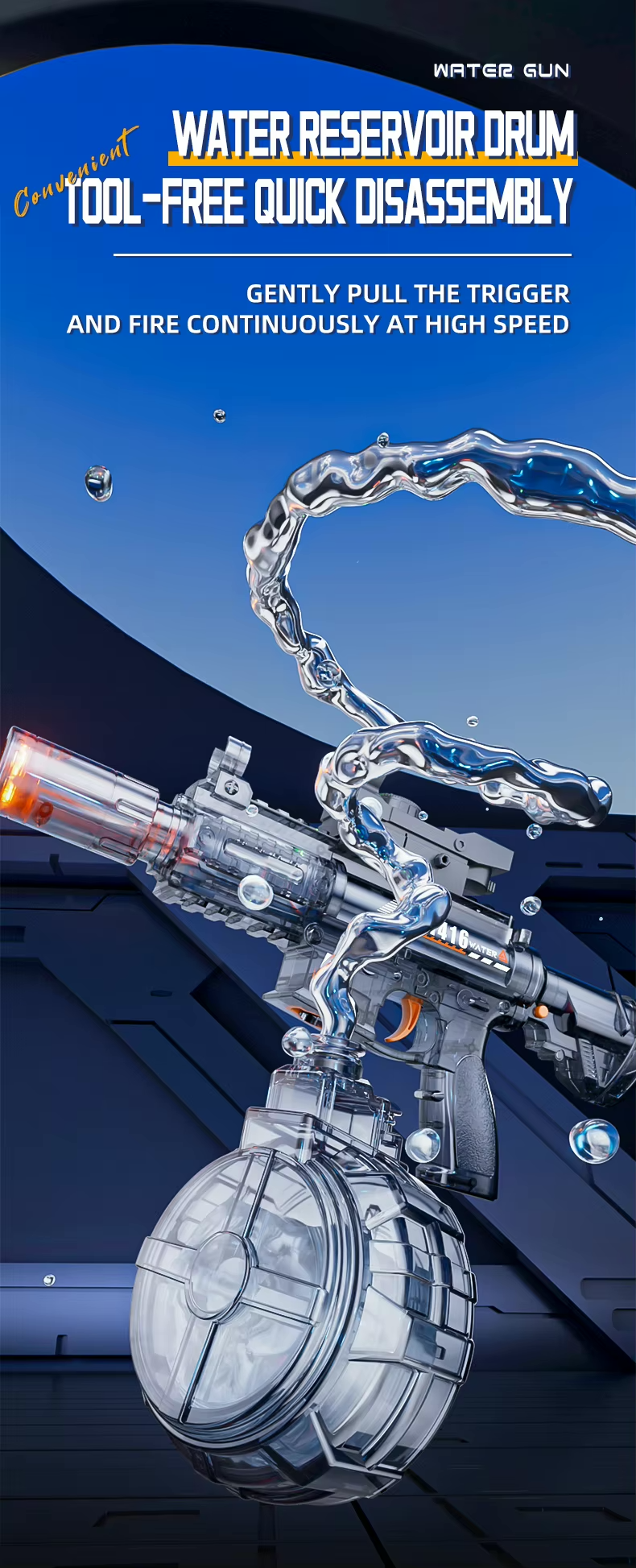 Vodní pistole je vybavena 170ml bubnovým zásobníkem, který se snadno plní a umožňuje pohodlné používání.