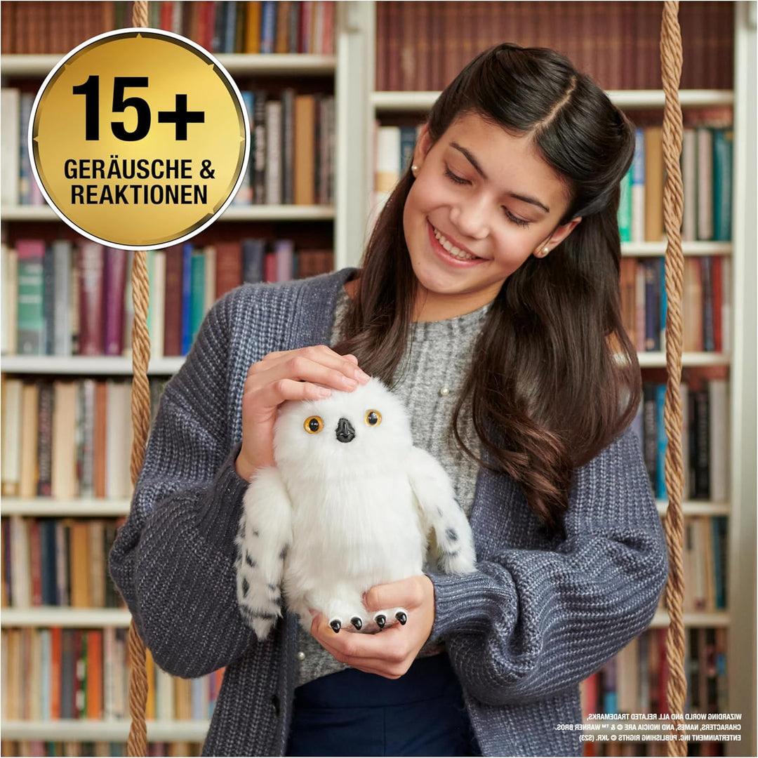 The officially licensed Harry Potter wizard owl comes to life in your home! Plush Hedwig (approx. 23 cm) responds to touch and can recognize the tone of your voice when you speak to her. With over 15 sounds and realistic movements , she turns her head, flaps her wings, moves her beak and can express joy and discontent - just like a real Hogwarts owl.