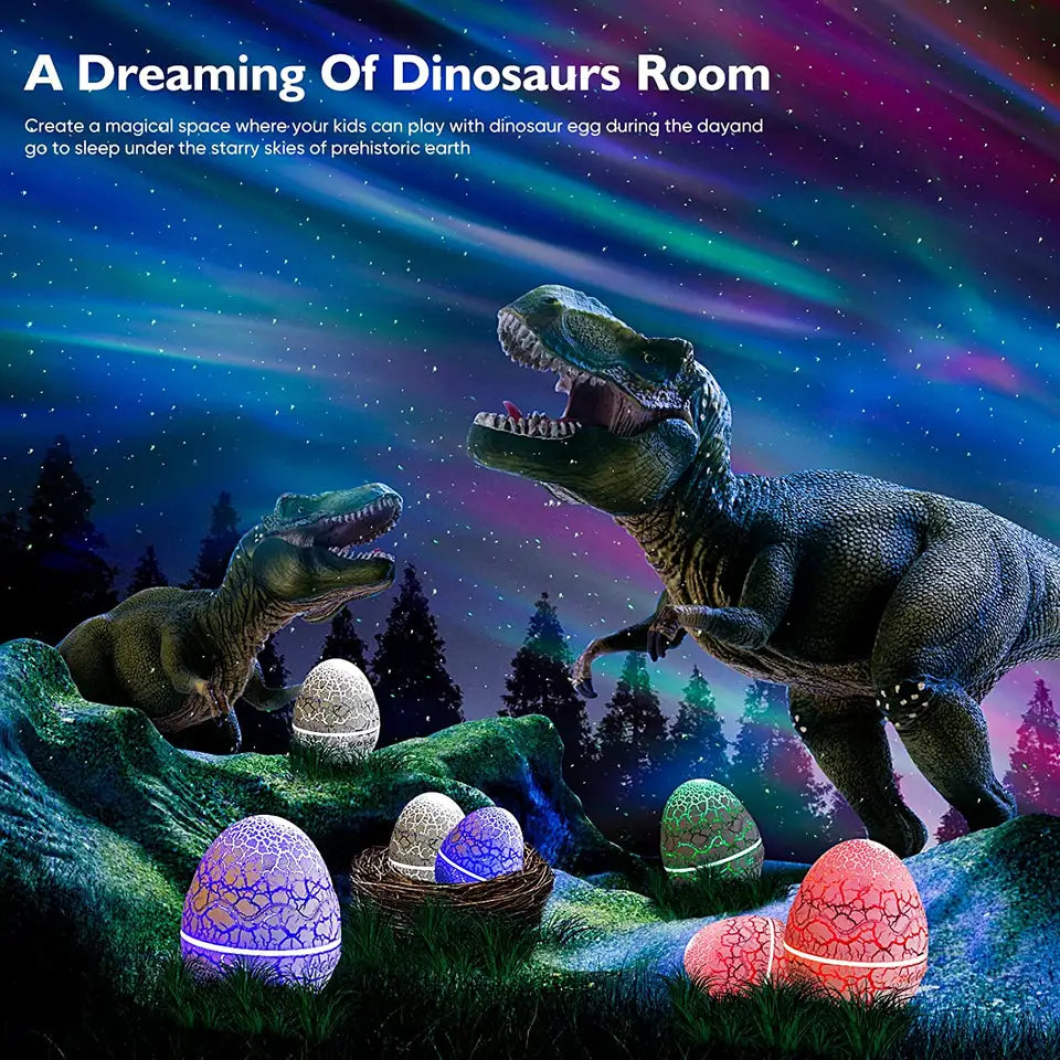 2 az 1-ben – Lámpa és projektor egyben: Ez a stílusos dinoszaurusztojás dekoratív éjjeli lámpaként szolgál. A felső rész levétele után projektorrá alakul, amely galaxisokat, csillagokat és ködöket vetít a mennyezetre.