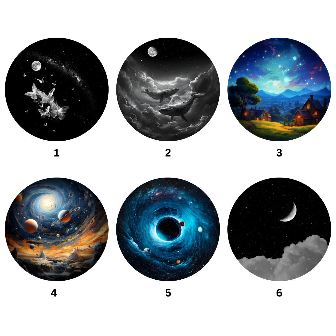 Induljon el egy lenyűgöző utazásra a csillagok között a projektor galaxishoz készült kiegészítő kazettákkal. Minden készlet egyedi betekintést nyújt a mély űrbe, ahol az űr titkai keverednek a lélegzetelállító égi testek szépségével.