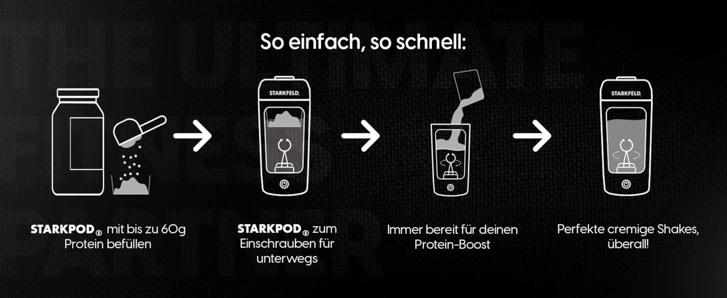 A STARKSHAKE erőteljes motorral büszkélkedhet, amely könnyedén sima állagúra keveri a fehérjeport. Nincs több csomó vagy keveretlen darab – minden ital tökéletesen sima és finom lesz, így teljes mértékben élvezheti fehérje valódi ízét.