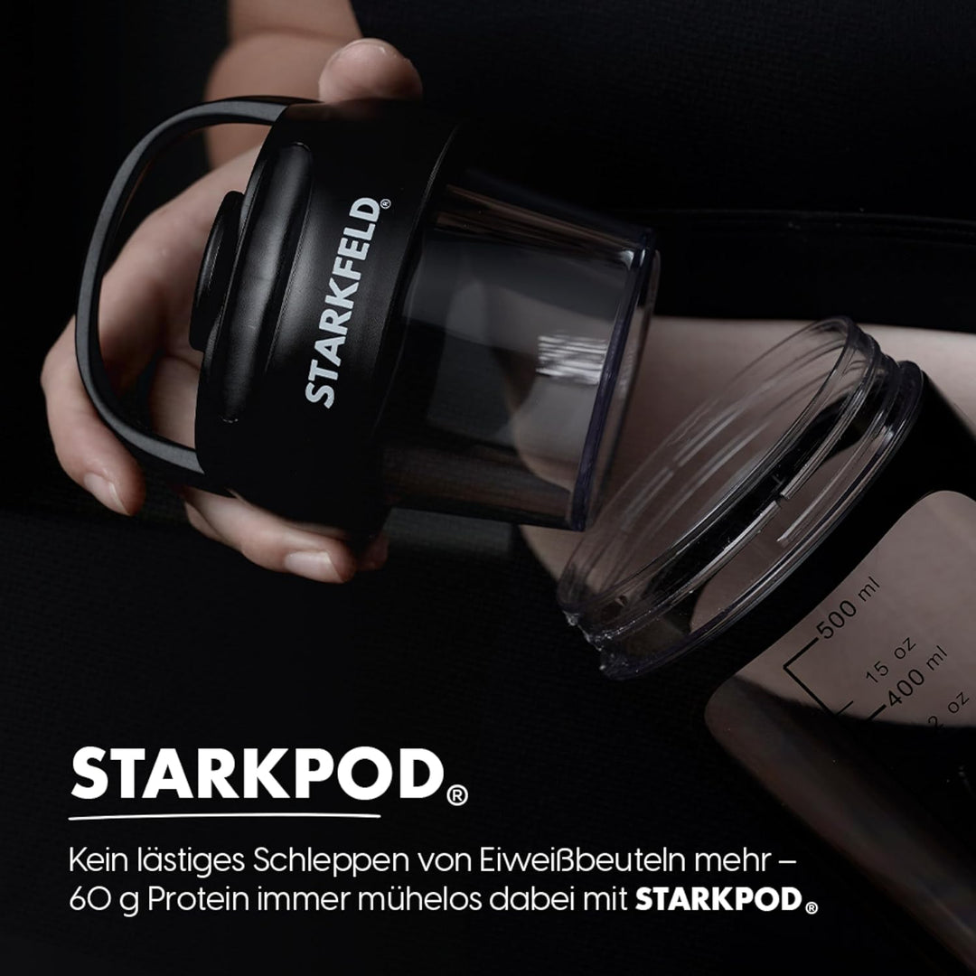 A STARKSHAKE shaker egy 60 g fehérje űrtartalmú edénnyel van felszerelve, ami elegendő kedvenc fehérje italának elkészítéséhez. Ez a méret lehetővé teszi, hogy elég erős italt keverjen össze a maximális regenerálódás és az izomnövekedés érdekében anélkül, hogy folyamatosan újratöltené a port.