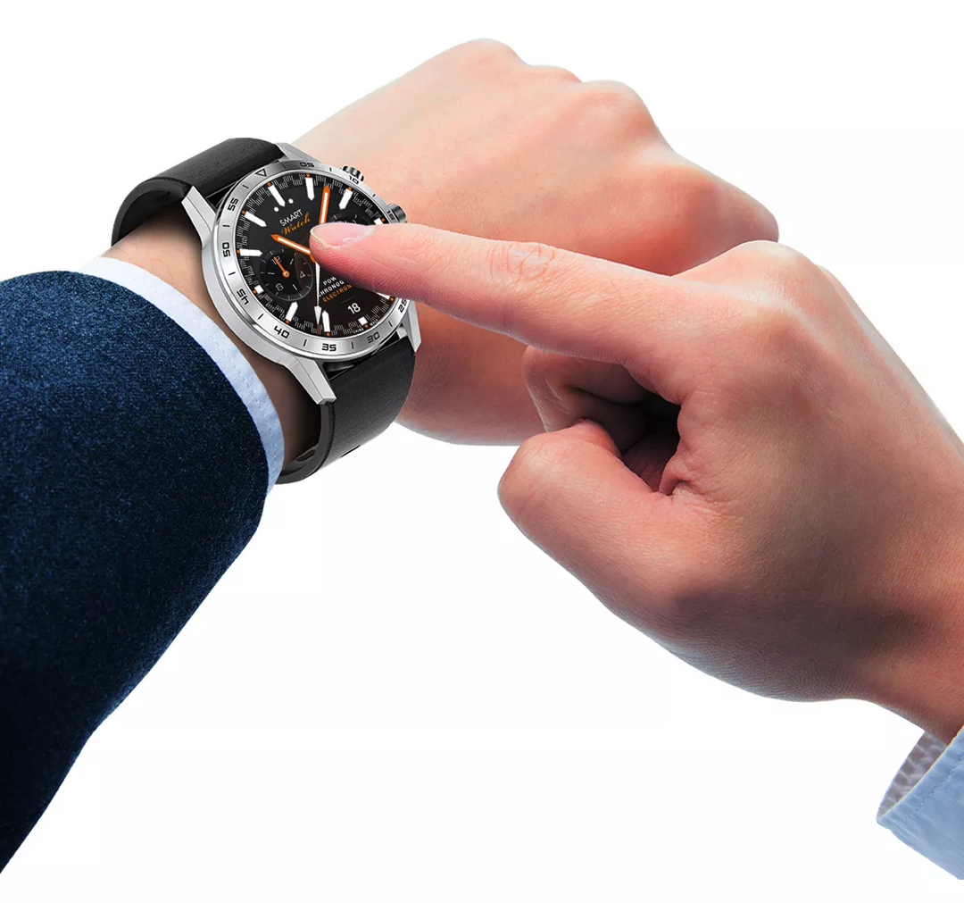 Az okosórát az óra jobb oldalán található érintőképernyő és forgó kerék segítségével vezérelheti, így biztosítva a legmagasabb kényelmet működés közben.