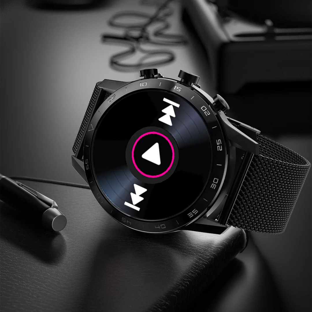 Az okosóra egyszerű zenevezérlést tesz lehetővé, ha IOS és Android operációs rendszerrel rendelkező okostelefonhoz csatlakozik. Ezen kívül az okosóra belsejében egy beépített hangszóró található, amellyel bármilyen zene közvetlenül lejátszható az óráról.