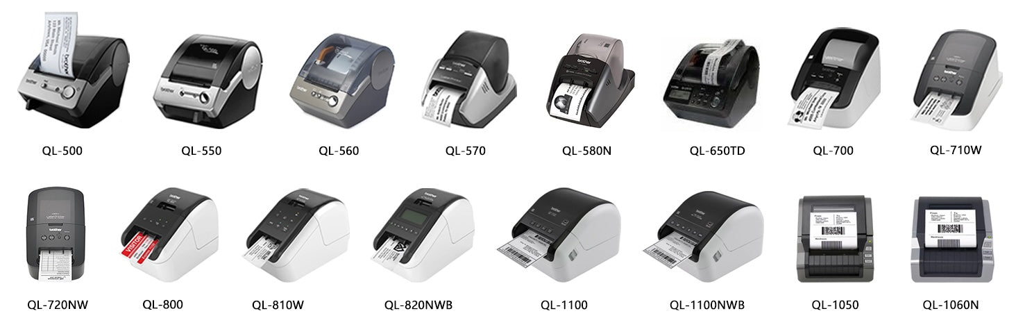 Compatible with Brother QL printers – QL-500, QL-550, QL-570, QL-580N, QL-650TD, QL-700, QL-710W, QL-720NW, QL-800, QL-810N, QL-820NWB, QL-1050, QL-1060N, QL-1100, QL-1110NWB and more.