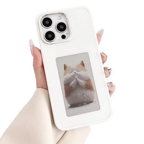 Ochranný kryt na iPhone se čtyřbarevným e-ink displejem | S aplikací pro iOS, iPhone 15, bílá