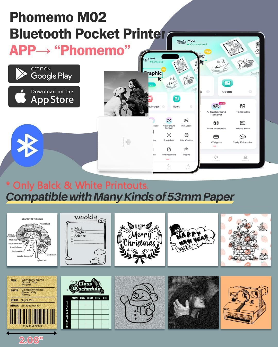 Perfect for students (printing notes, tests, learning materials), professionals (meeting notes, work assignments), but also for family fun - printing photos, diary decorations or creative projects with children.