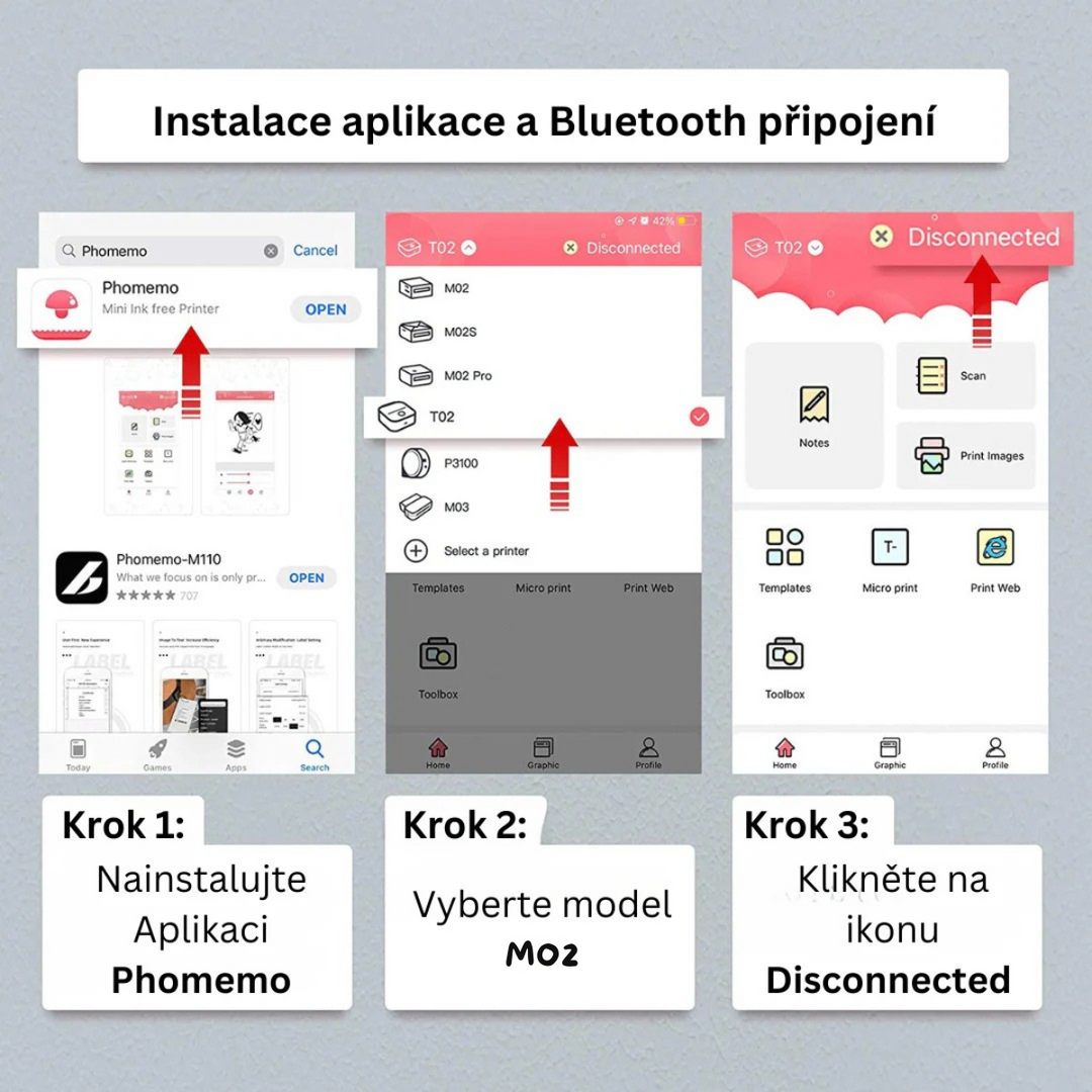 - Open the Phomemo app and select the printer model M02.