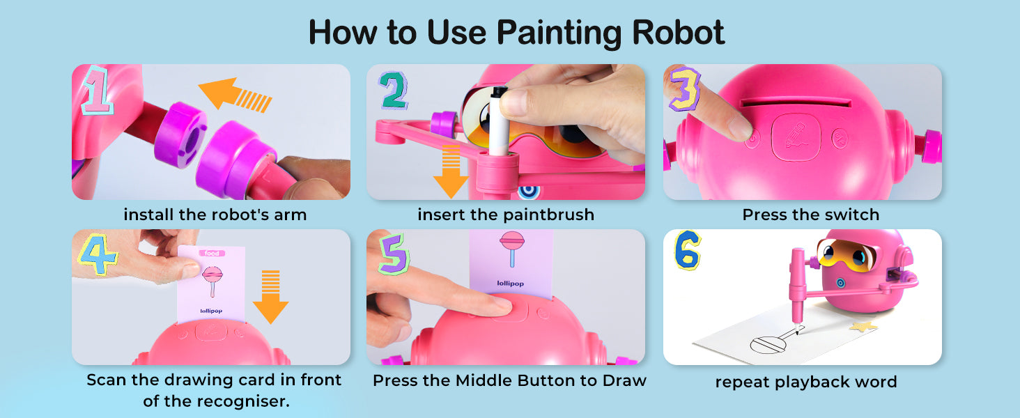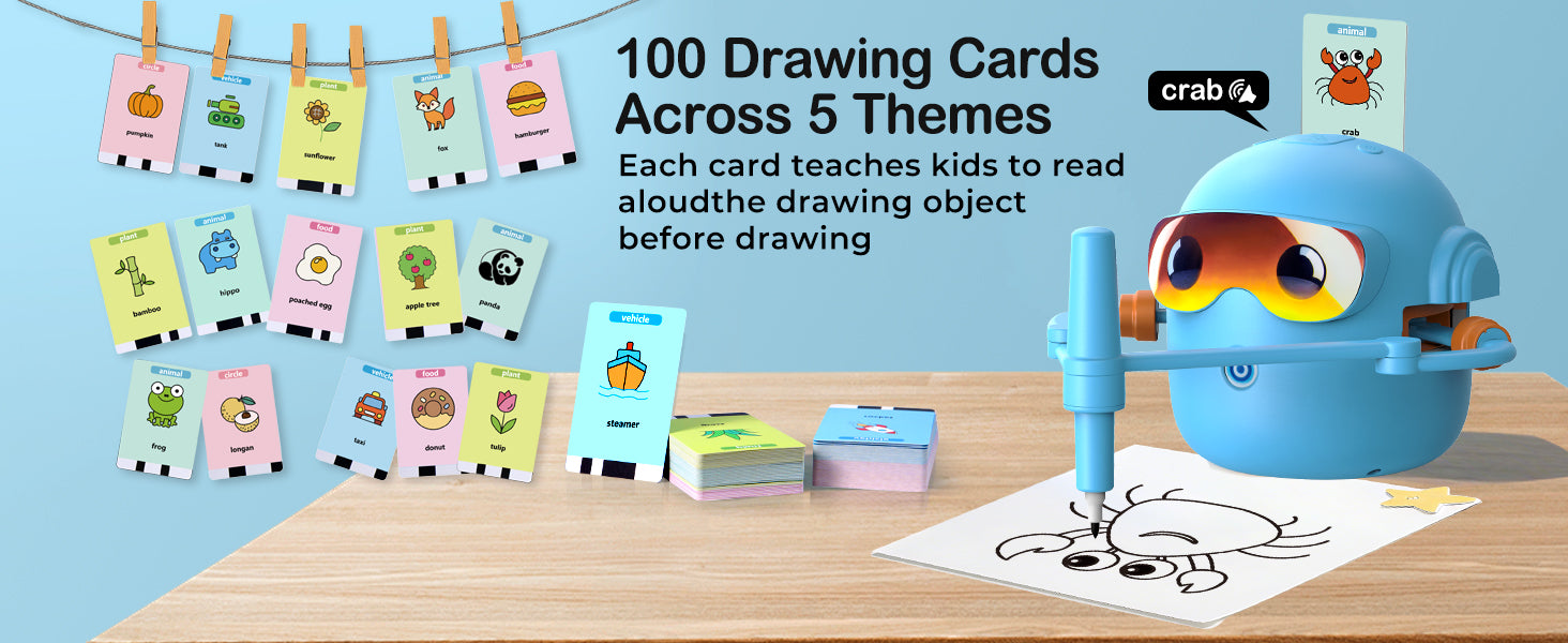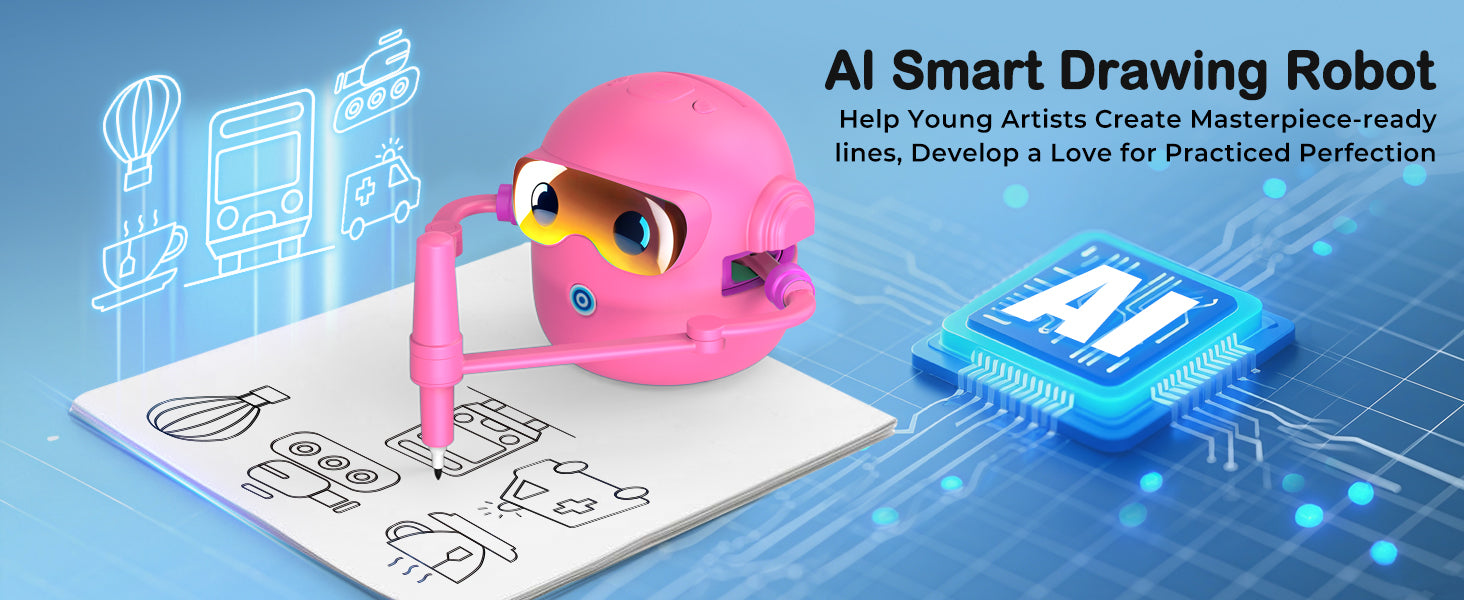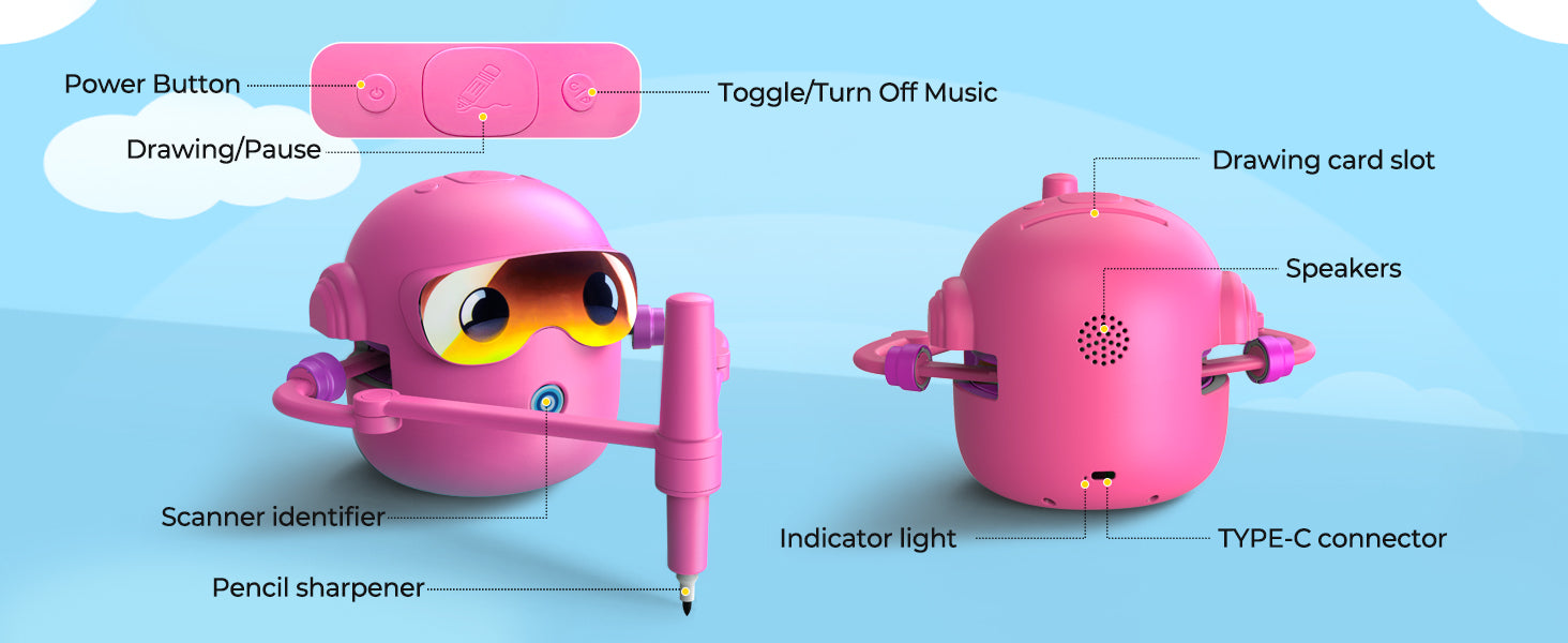 Objevte zábavný způsob, jak děti naučit kreslit! Interaktivní kreslící robot je inspirovaný principy Montessori a pomáhá dětem rozvíjet kreativitu, jemnou motoriku i představivost. Díky jednoduchému systému kreslení podle karet zvládnou vytvářet obrázky i úplní začátečníci. Robot navíc přehrává veselou hudbu, která zpříjemní každou tvůrčí chvilku.