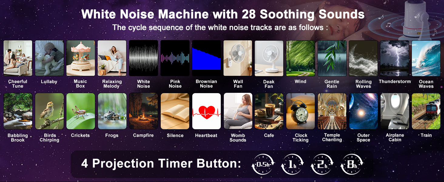 - ⚪ White version (with nature and relaxation sounds) – projector with built-in 28 soothing nature sounds and melodies . A great addition for meditation, reading or falling asleep.