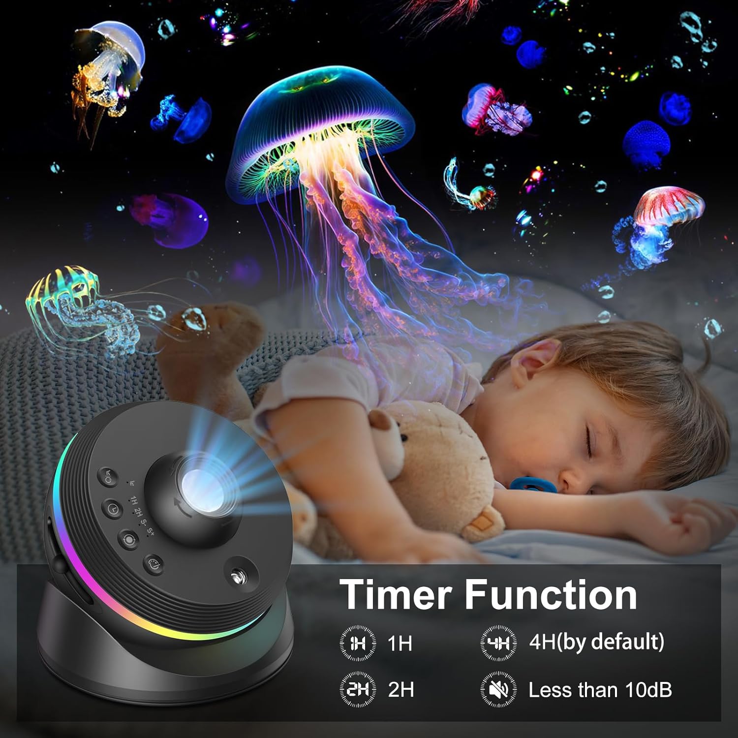 Perfektní řešení pro děti i dospělé, kteří rádi usínají při jemném světle projekce.